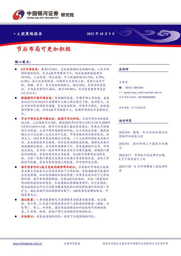 【银河证券】【20221009】A股策略报告:节后布局可更加积极-16页