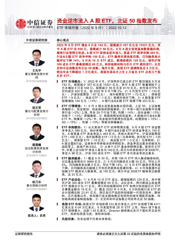 【中信证券】【20221012】ETF市场月报(2022年9月):资金逆市流入A股ETF,北证50指数发布-23页
