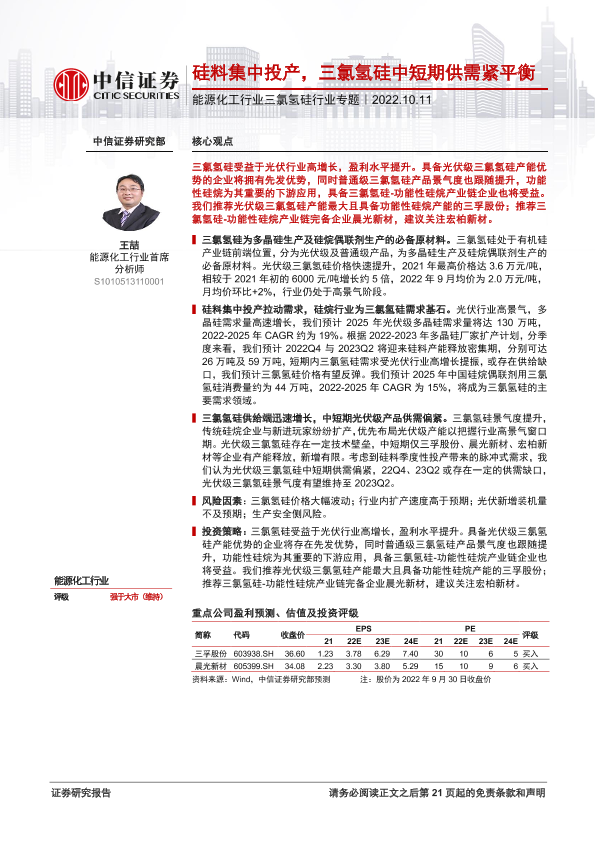【中信证券】【20221011】能源化工行业三氯氢硅行业专题:硅料集中投产,三氯氢硅中短期供需紧平衡-21页