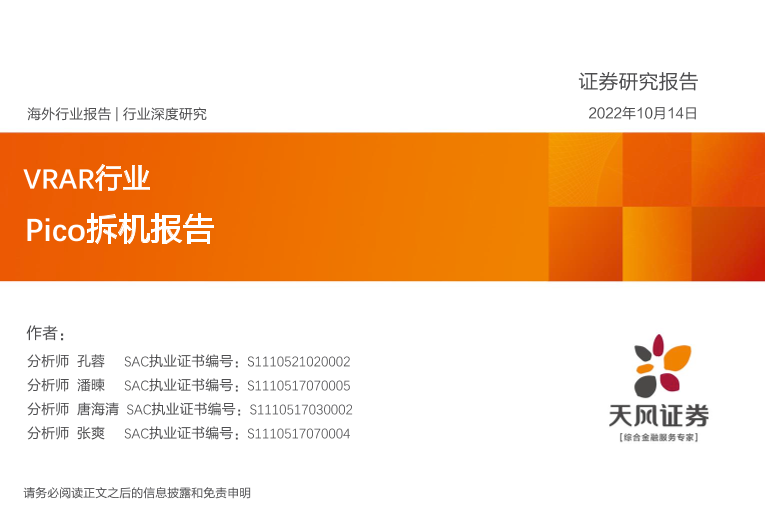 【天风证券】【20221014】VRAR行业:Pico拆机报告-42页