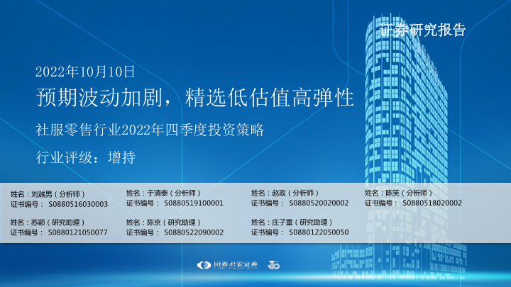 【国泰君安证券】【20221010】社服零售行业2022年四季度投资策略:预期波动加剧,精选低估值高弹性-75页