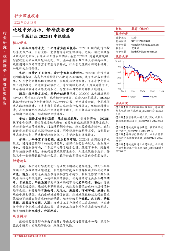 【东亚前海证券】【20221013】社服行业2022H1中报综述:逆境中炼内功,静待疫后重振-27页
