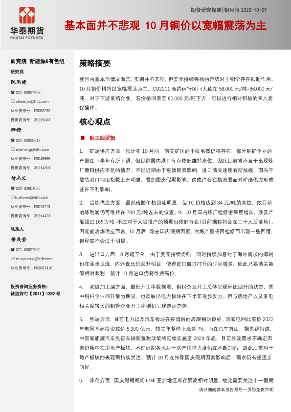 【华泰期货】【20221009】铜月报:基本面并不悲观,10月铜价以宽幅震荡为主-21页