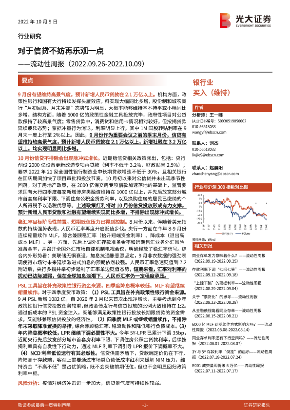 【光大证券】【20221009】银行业流动性周报:对于信贷不妨再乐观一点-16页
