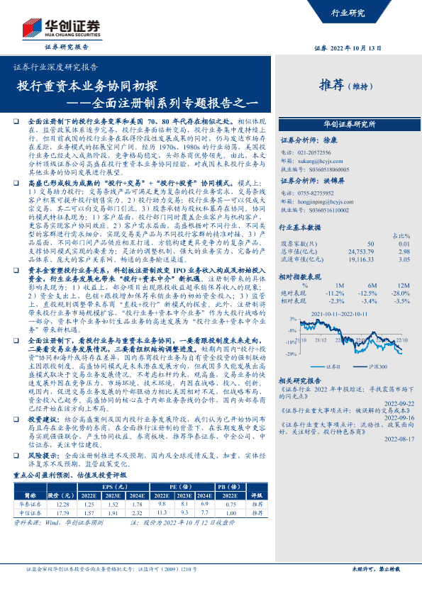 【华创证券】【20221013】证券行业深度研究报告:全面注册制系列专题报告之一,投行重资本业务协同初探-33页