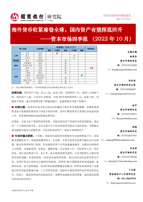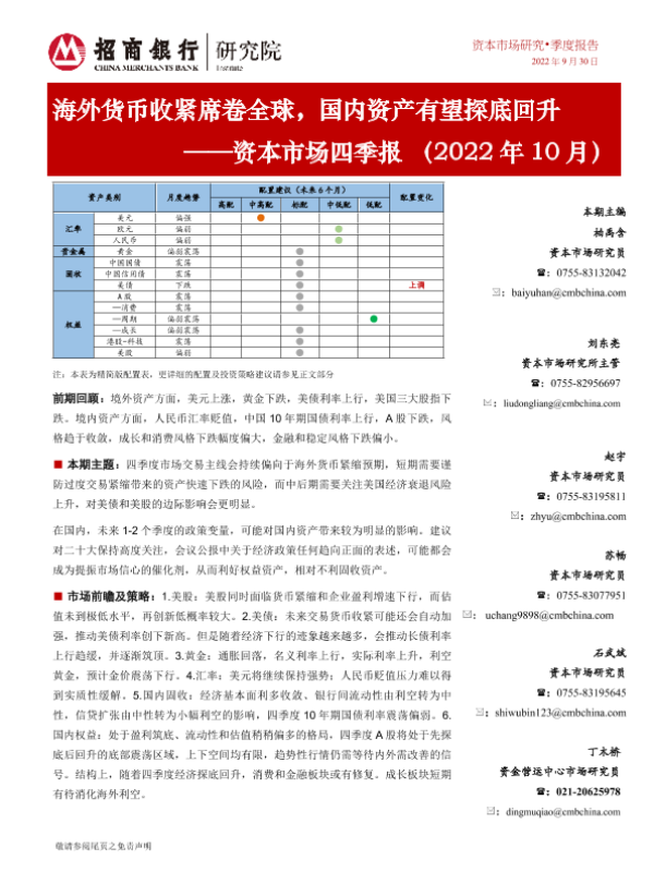 【招商银行】【20220930】海外货币收紧席卷全球,国内资产有望探底回升 ——资本市场四季报(2022年10月)-25页