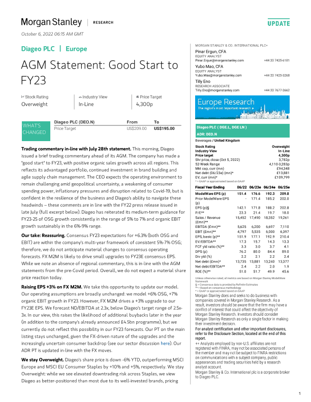 【Morgan Stanley】【20221006】DGE.L-Morgan Stanley-Diageo PLC AGM Statement Good Start to FY23-13页