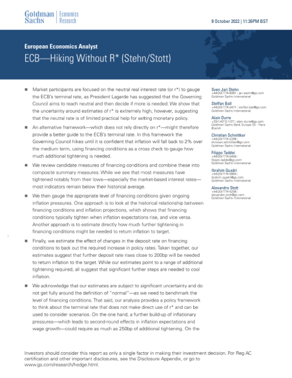 【Goldman Sachs】【20221009】European Economics Analyst_ ECB—Hiking Without R_-13页