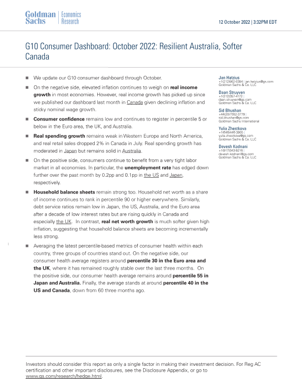 【Goldman Sachs】【20221012】G10 Consumer Dashboard October 2022 Resilient Australia, Softer Canada-11页
