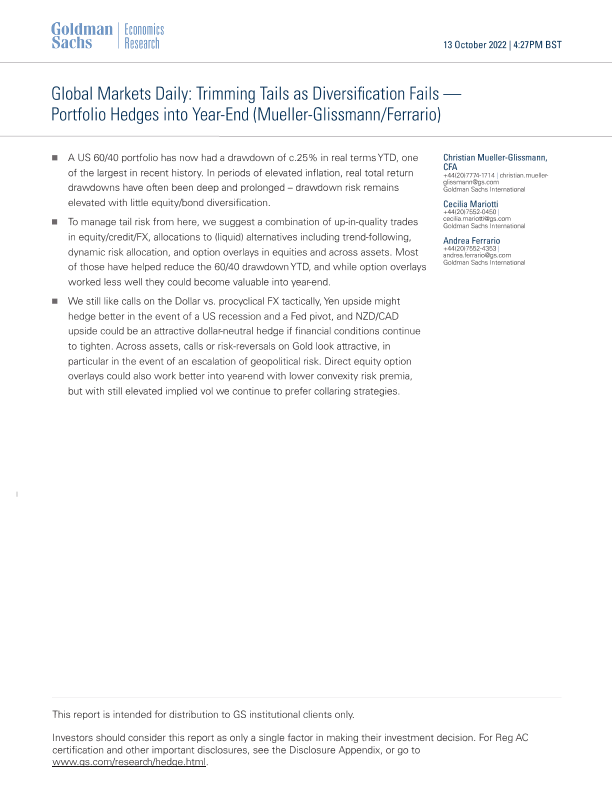 【Goldman Sachs】【20221013】Portfolio Hedges into Year-End-10页