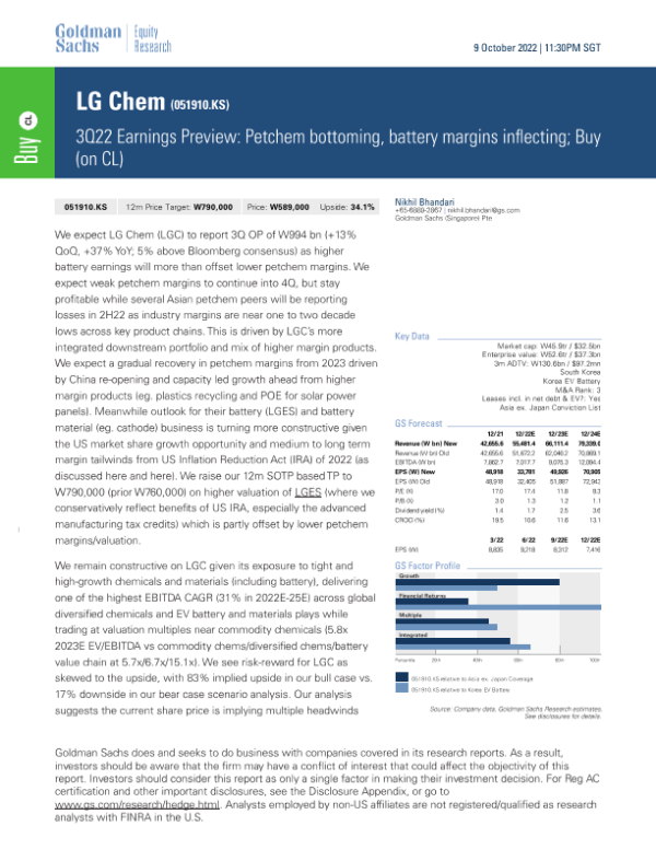 【Goldman Sachs】【20221009】3Q22 Earnings Preview Petchem bottoming, battery margins inflecting; Buy (on CL)-13页