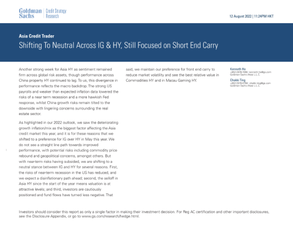 【Goldman Sachs】【20220812】Shifting To Neutral Across IG & HY, Still Focused on Short End Carry-33页