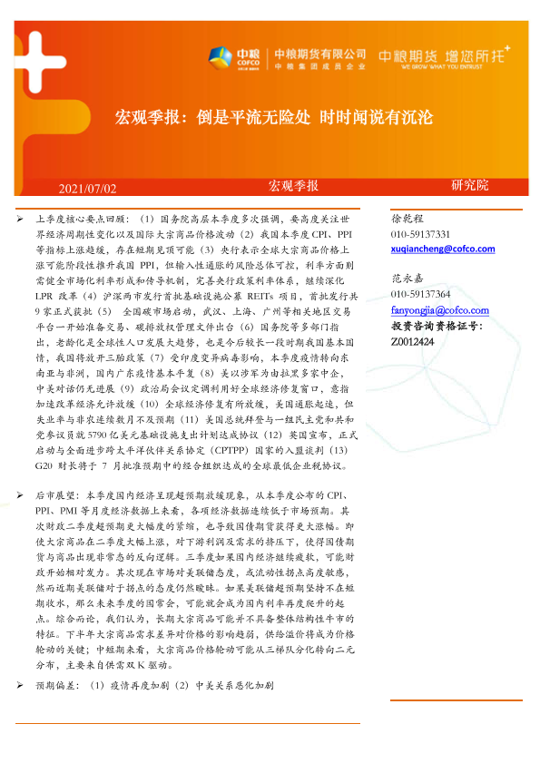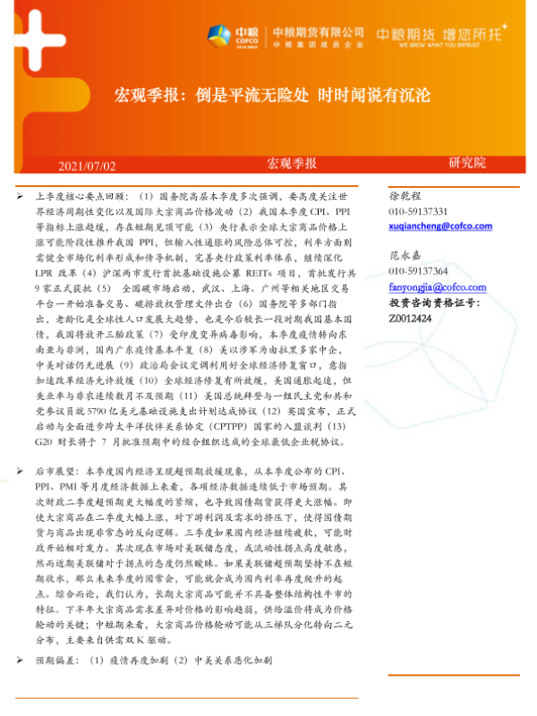 【中粮期货】【20210702】宏观季报:倒是平流无险处,时时闻说有沉沦-16页