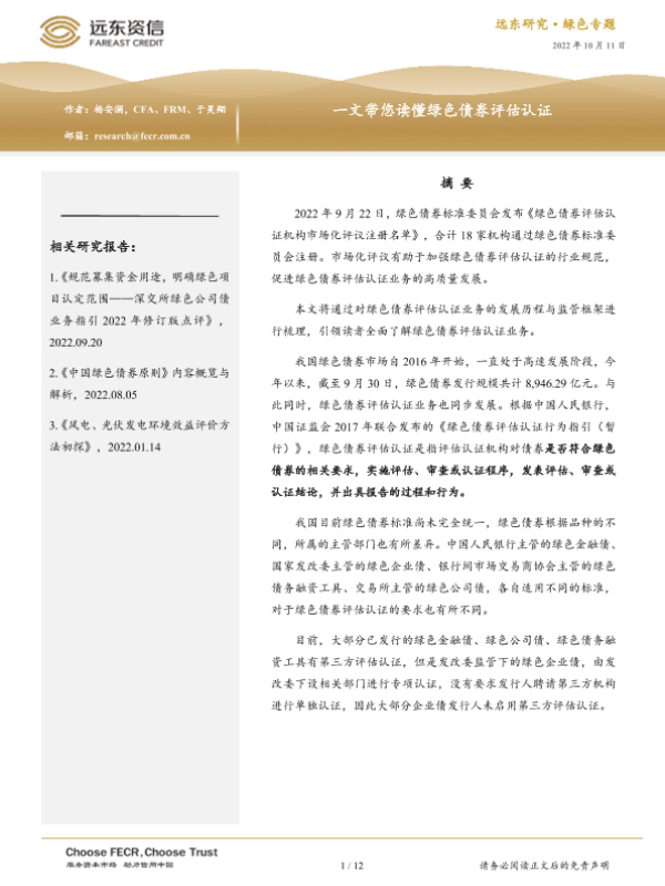 【远东资信】【20221011】一文带您读懂绿色债券评估认证-12页
