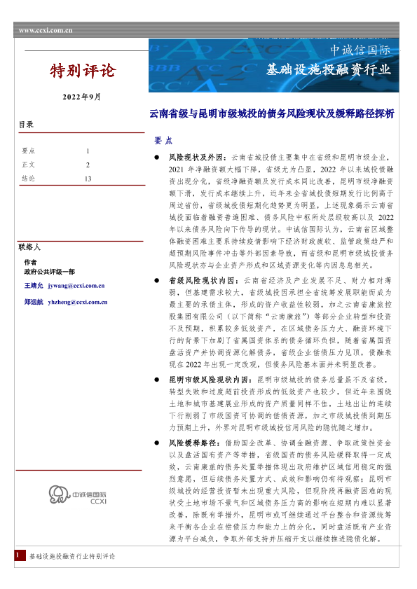 【中诚信国际】【202209】中诚信-云南省级与昆明市级城投的债务风险现状及缓释路径探析-13页