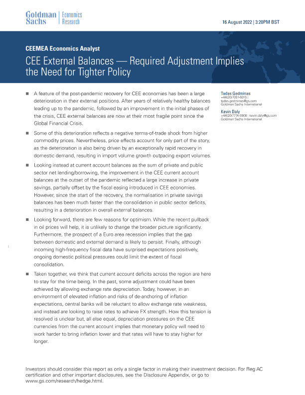 【Goldman Sachs】【20220816】CEE External Balances — Required Adjustment Implies the Need for Tighter Policy-14页