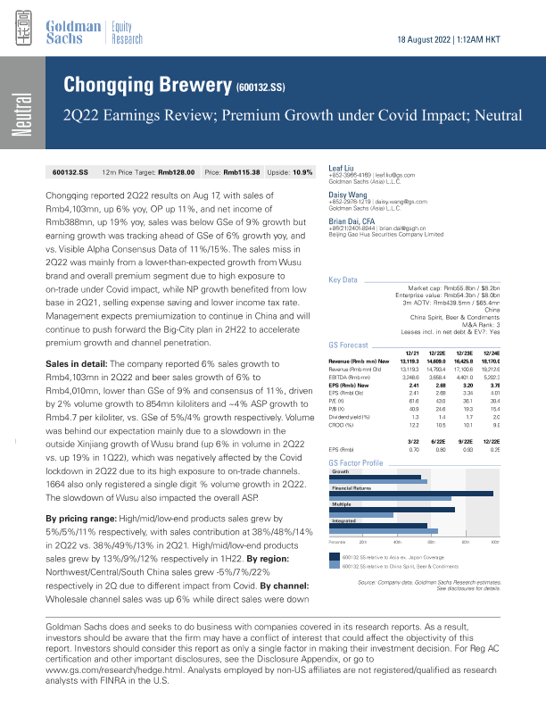 【Goldman Sachs】【20220818】2Q22 Earnings Review; Premium Growth under Covid Impact; Neutral-9页