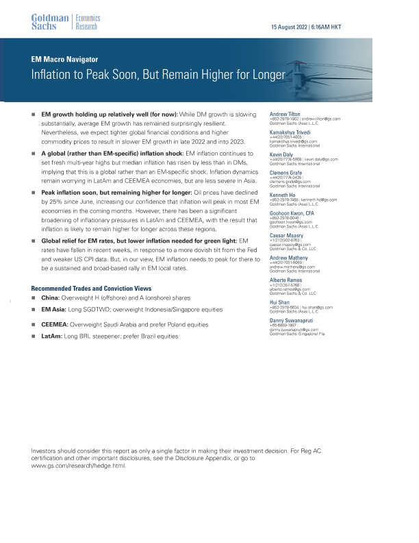 【Goldman Sachs】【20220815】EM Macro Navigator_ Inflation to Peak Soon, But Remain Higher for Longer-41页