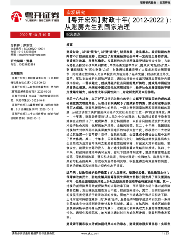 【粤开证券】【20221019】【粤开宏观】财政十年(2012-2022):从账房先生到国家治理-23页