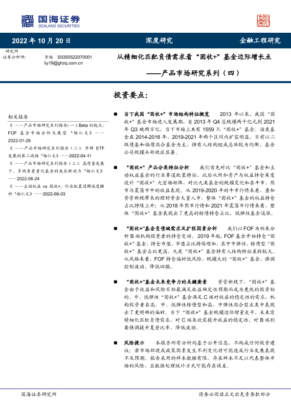 【国海证券】【20221020】产品市场研究系列(四):从精细化匹配负债需求看“固收+”基金边际增长点-44页