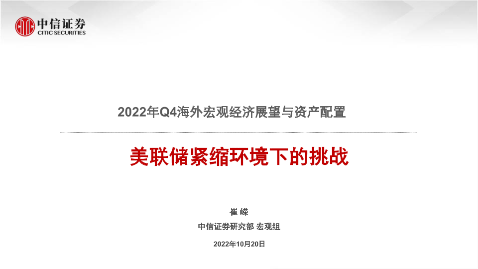 【中信证券】【20221020】2022年Q4海外宏观经济展望与资产配置:美联储紧缩环境下的挑战-16页