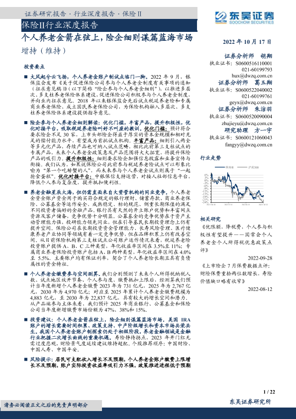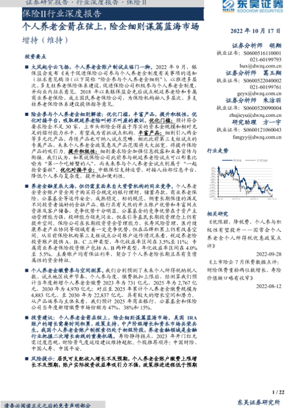 【东吴证券】【20221017】保险Ⅱ行业深度报告:个人养老金箭在弦上,险企细则谋篇蓝海市场-22页