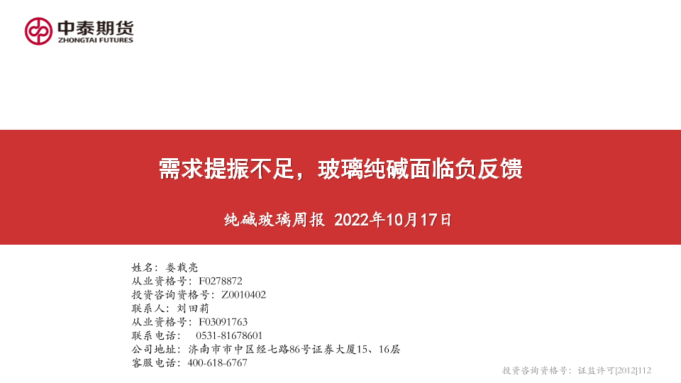 【中泰期货】【20221017】纯碱玻璃周报:需求提振不足,玻璃纯碱面临负反馈20221017-25页