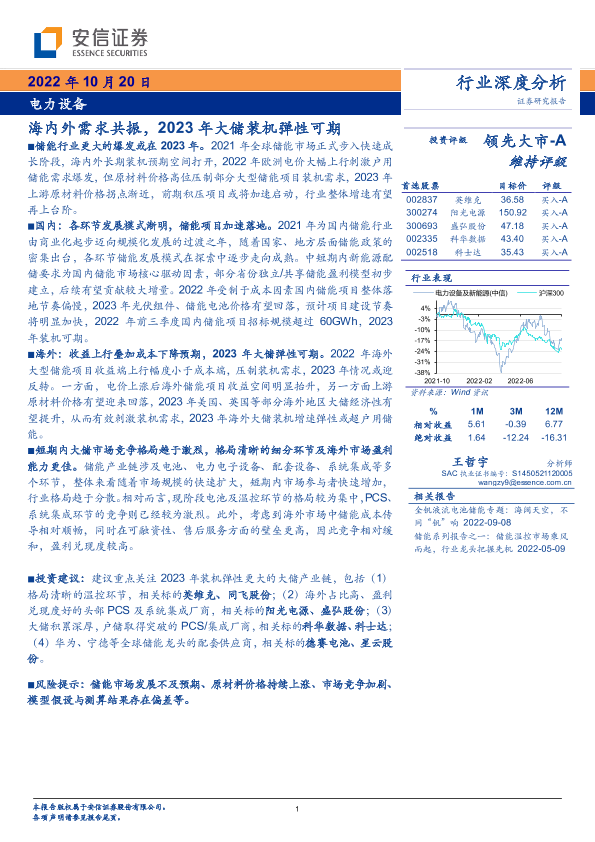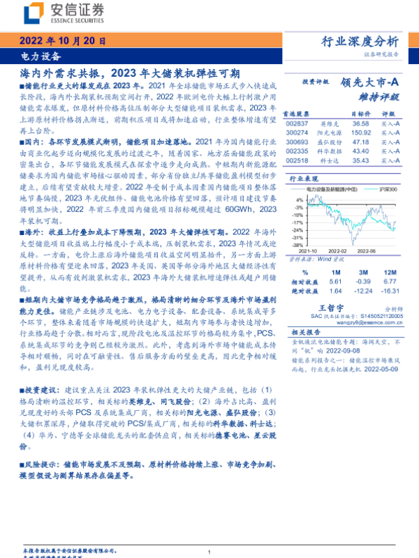 【安信证券】【20221020】电力设备行业:海内外需求共振,2023年大储装机弹性可期-26页