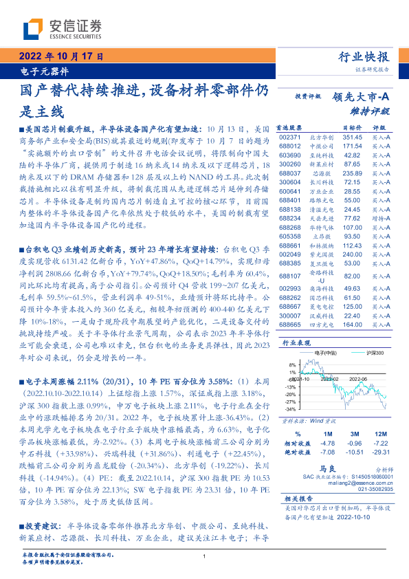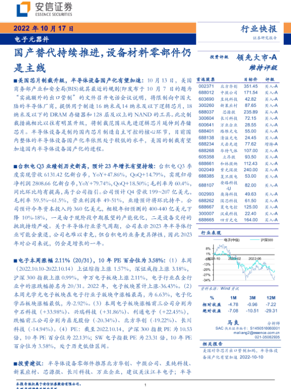 【安信证券】【20221017】电子元器件行业:国产替代持续推进,设备材料零部件仍是主线-15页