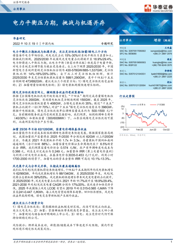 【华泰证券】【20221019】公用事业行业专题研究:电力平衡压力期,挑战与机遇并存-26页