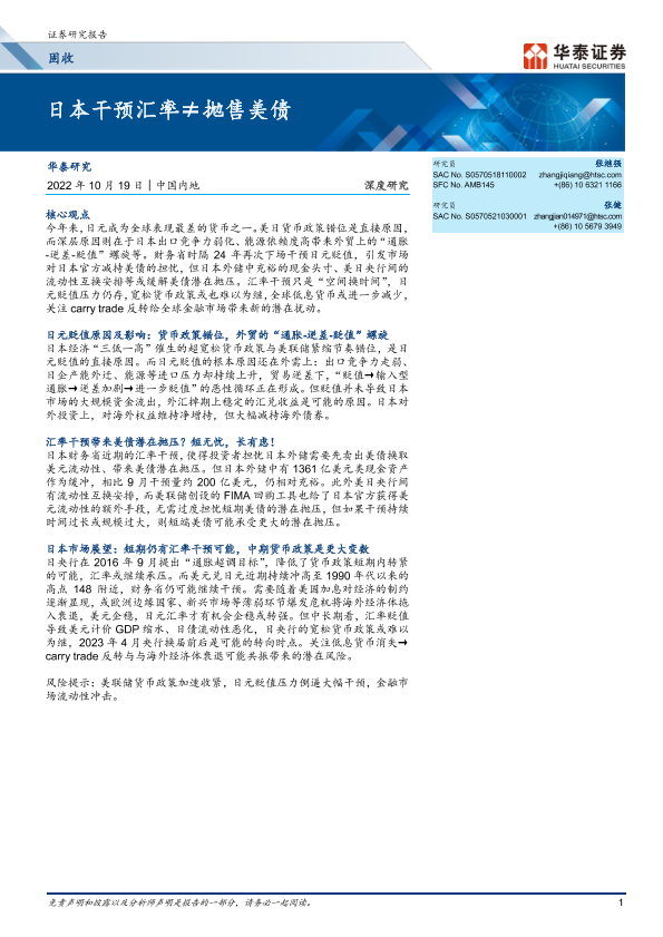 【华泰证券】【20221019】固收深度研究:日本干预汇率≠抛售美债-18页
