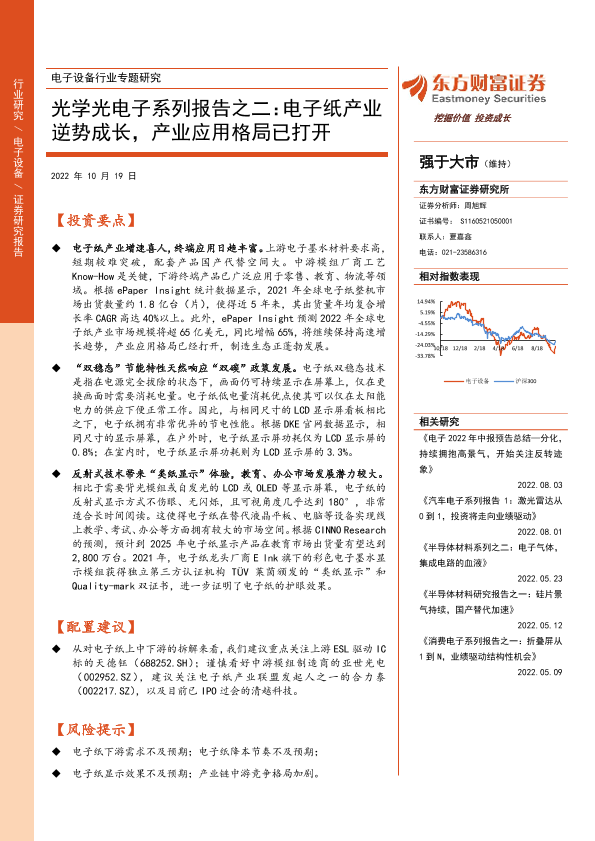 【东方财富证券】【20221019】光学光电子系列报告之二:电子纸产业逆势成长,产业应用格局已打开-32页