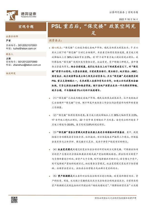 【德邦证券】【20221014】宏观专题:PSL重启后,“保交楼”政策空间充足-15页