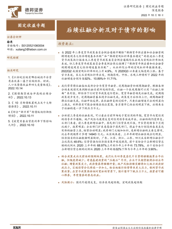 【德邦证券】【20221016】后续社融分析及对于债市的影响-20页