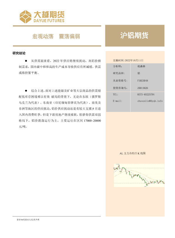 【大越期货】【20221011】沪铝期货月度报告:宏观动荡,震荡偏弱20221011-20页