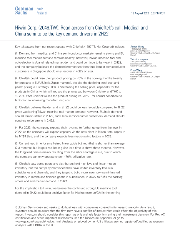 【Goldman Sachs】【20220816】eftek's call_ Medical and China semi to be the key demand drivers in 2H22-8页