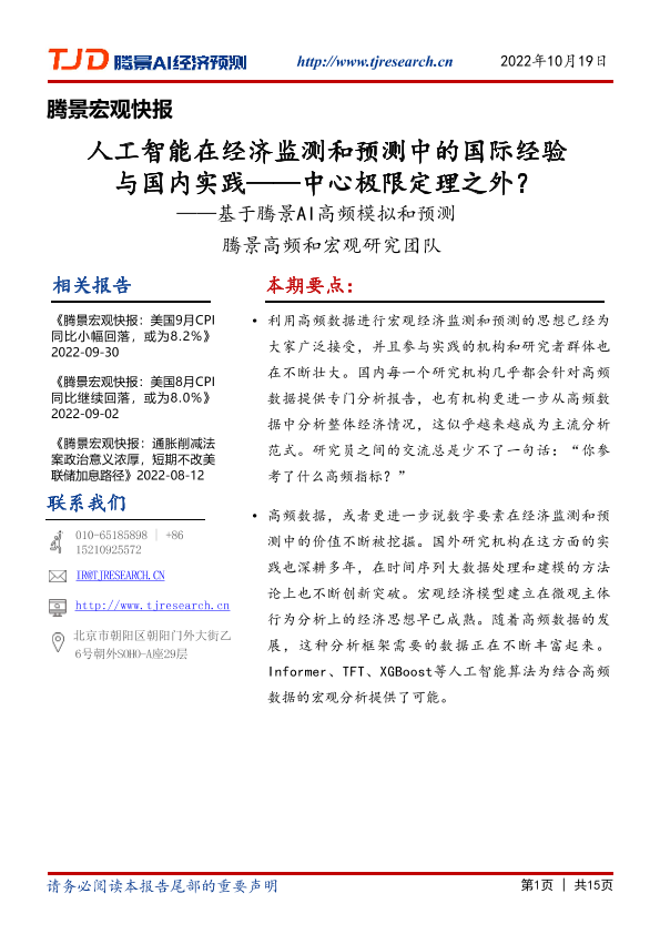 【腾景】【20221019】基于腾景AI高频模拟和预测:人工智能在经济监测和预测中的国际经验与国内实践——中心极限定理之外?-15页
