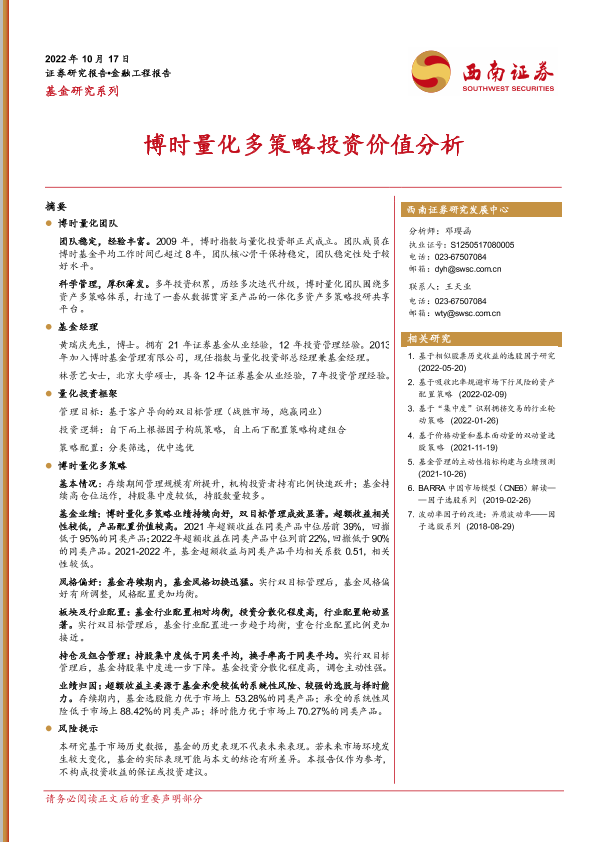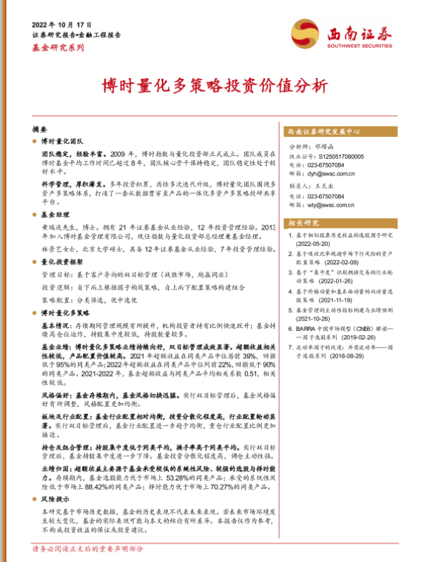【西南证券】【20221017】基金研究系列:博时量化多策略投资价值分析-17页
