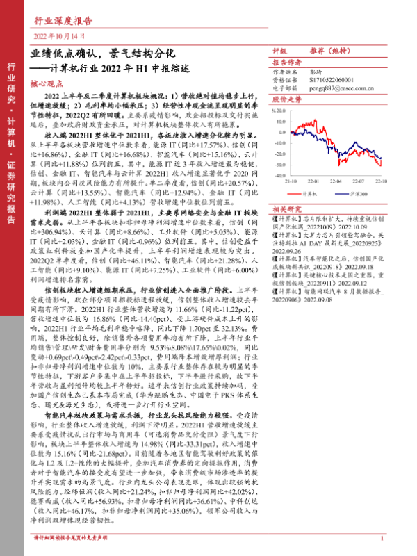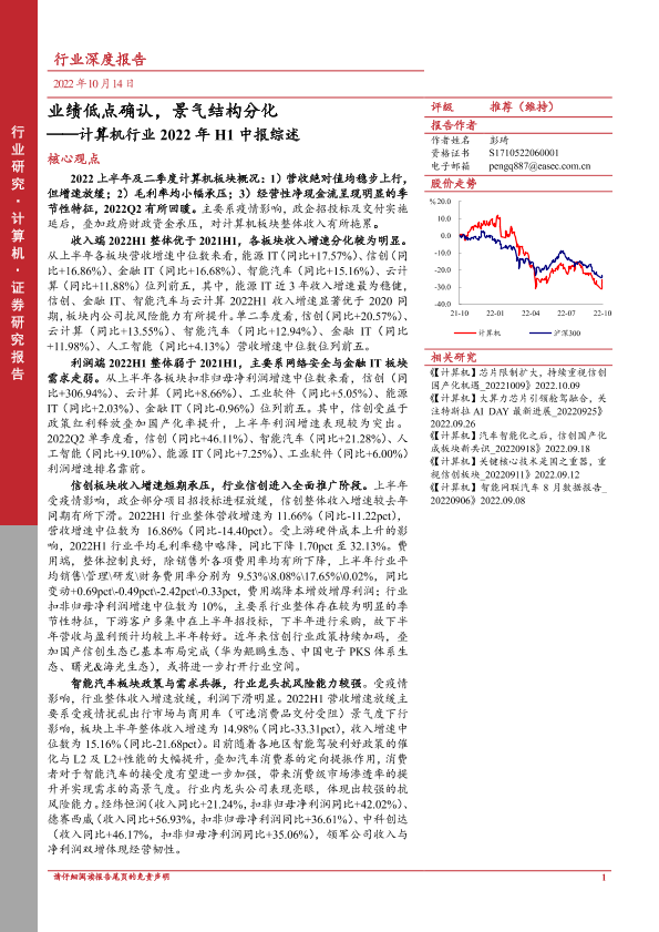 【东亚前海证券】【20221014】计算机行业2022年H1中报综述:业绩低点确认,景气结构分化-37页