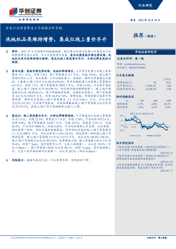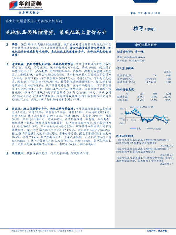 【华创证券】【20221020】家电行业增量赛道9月数据分析专题:洗地机品类维持增势,集成灶线上量价齐升-23页