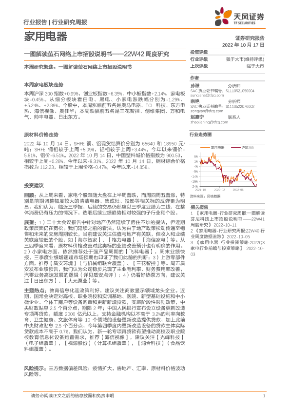 【天风证券】【20221017】家用电器行业22W42周度研究:一图解读萤石网络上市招股说明书-24页