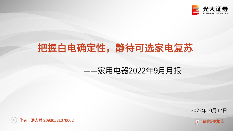 【光大证券】【20221017】家用电器行业2022年9月月报:把握白电确定性,静待可选家电复苏-39页