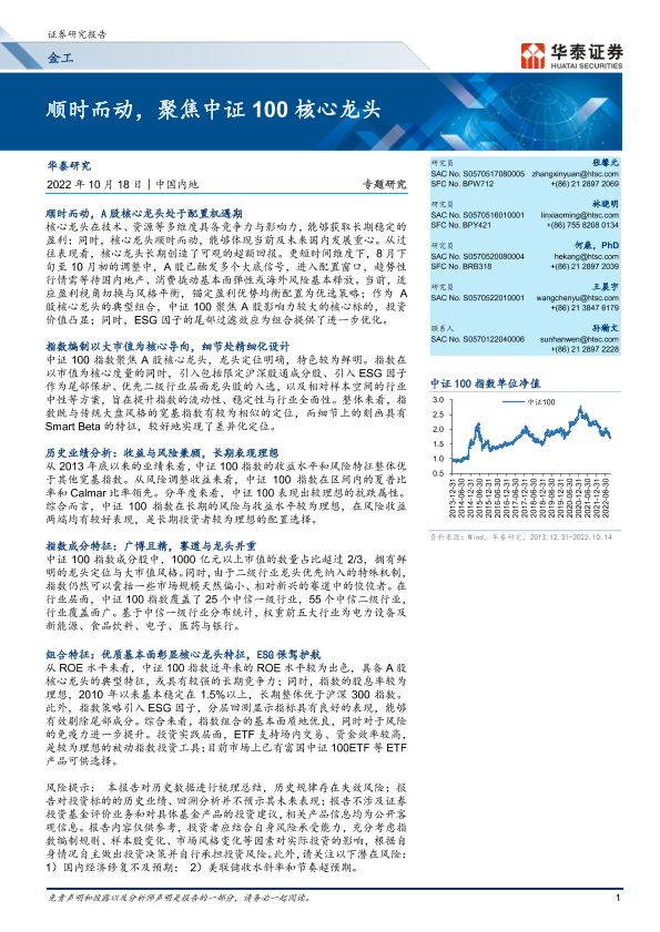 【华泰证券】【20221018】金工专题研究 :顺时而动,聚焦中证100核心龙头-20页