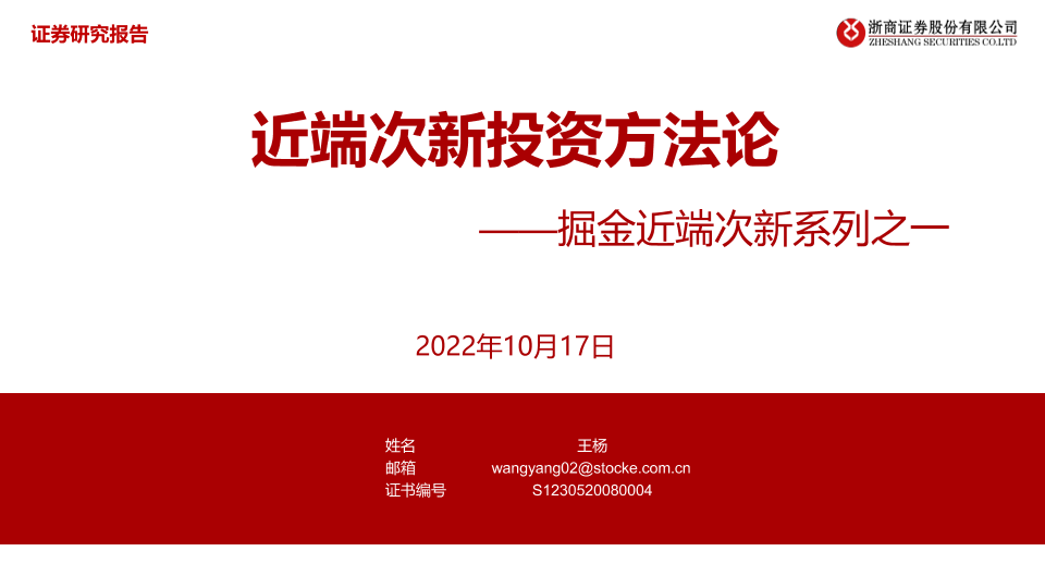 【浙商证券】【20221017】掘金近端次新系列之一:近端次新投资方法论-30页