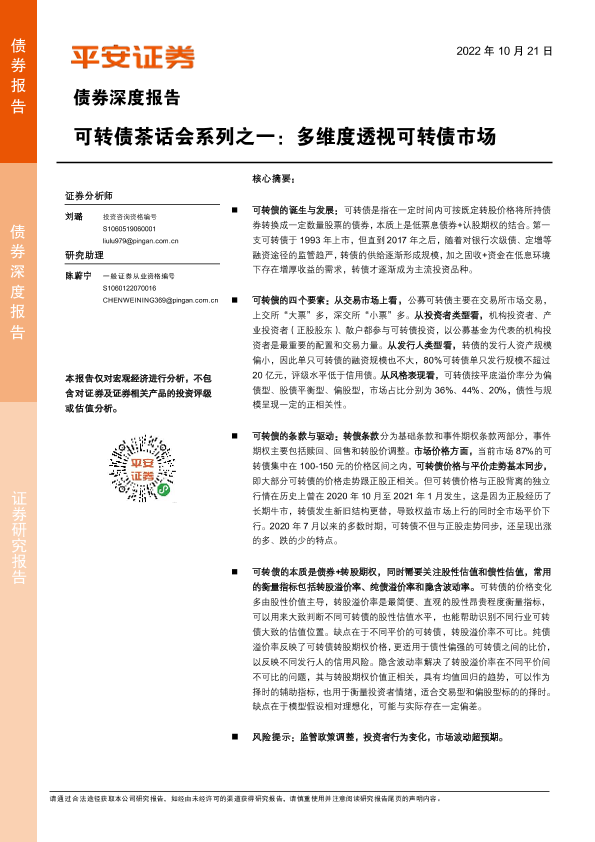 【平安证券】【20221021】可转债茶话会系列之一:多维度透视可转债市场-22页