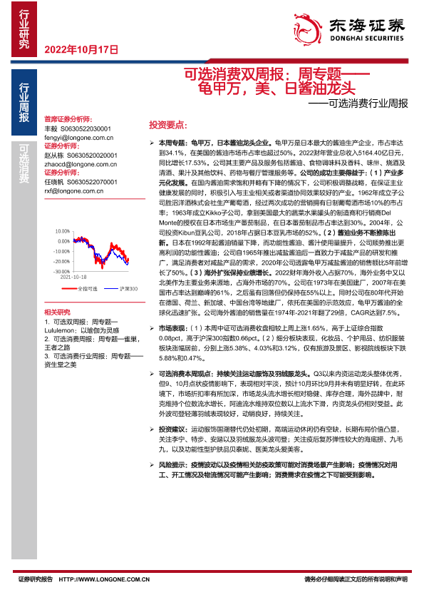 【东海证券】【20221017】可选消费双周报:周专题——龟甲万,美、日酱油龙头-19页