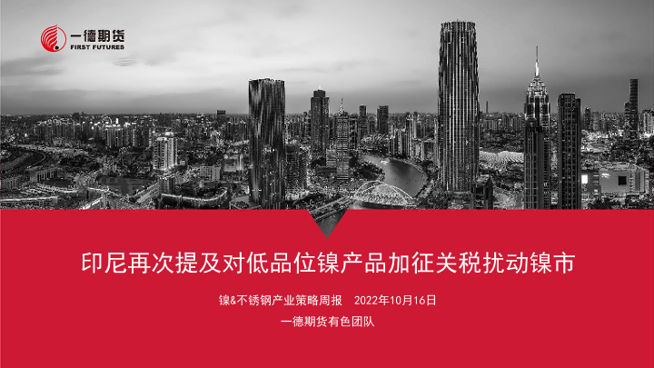 【一德期货】【20221016】镍&不锈钢产业策略周报:印尼再次提及对低品位镍产品加征关税扰动镍市-38页