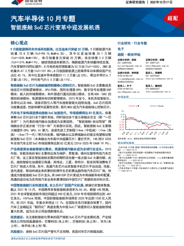 【国信证券】【20221017】汽车半导体行业10月专题:智能座舱SoC芯片变革中迎发展机遇-17页