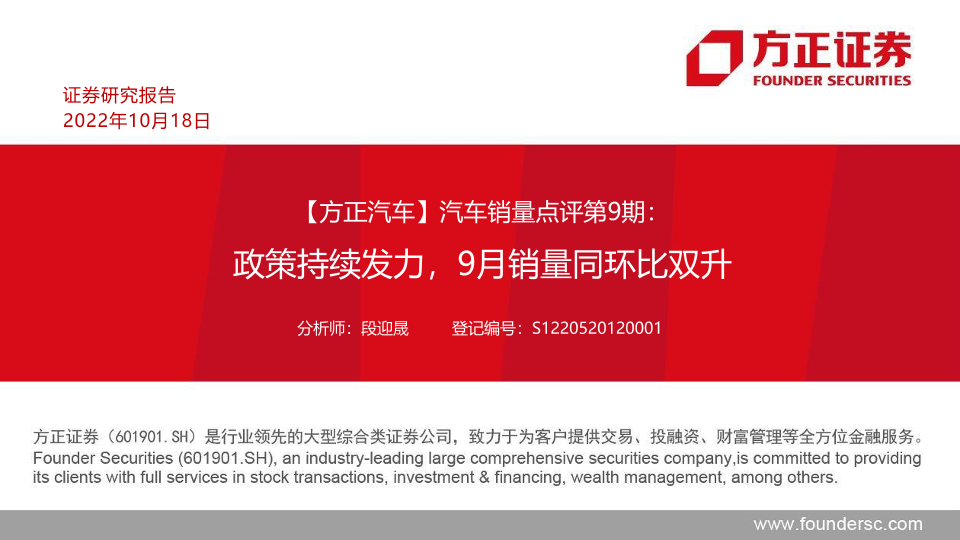 【方正证券】【20221018】汽车行业销量点评第9期:政策持续发力,9月销量同环比双升-35页
