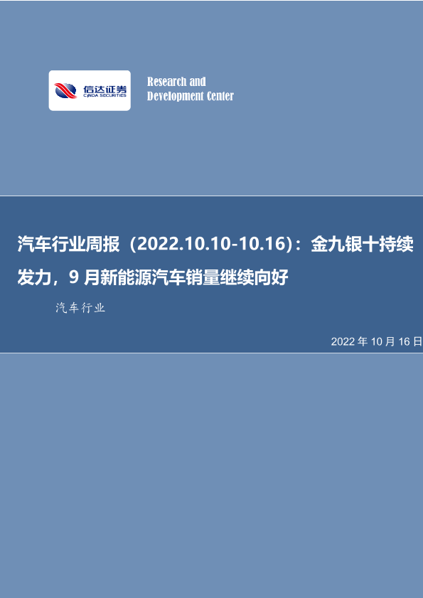 【信达证券】【20221016】汽车行业周报:金九银十持续发力,9月新能源汽车销量继续向好-21页